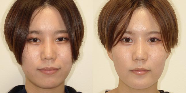 【治療内容】上のアゴと下のアゴの両方にこんもり感があったため、上下のアゴの骨をきって後ろに下げました。